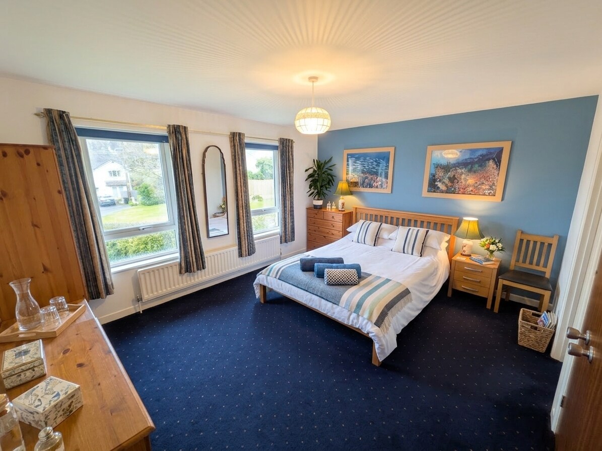 The North bedroom is the master bedroom and has a king size bed. It has its own en suite shower room with WC, washbasin and electric 900 X 900mm cubicle shower.