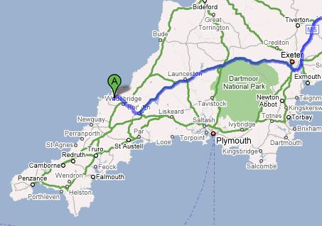 Above is a map of Cornwall showing the location of Rock and the towns nearby.